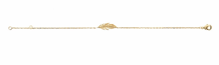 Laissez-vous transporter par la légèreté de notre bracelet plaqué or en forme de plume. Simple et facile à porter il accessoirisera toute vos tenues au quotidien.